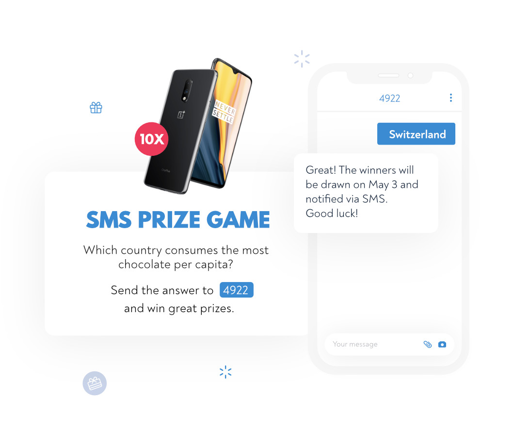 Стартувајте едноставни и ефикасни наградни игри преку SMS, Viber и други канали за мобилни пораки.